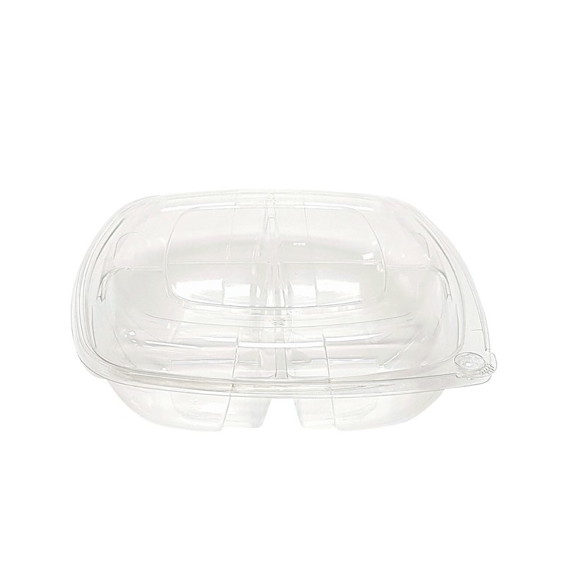48oz 4 comp. Clear PET Tamper Evident Square Salad Bowl